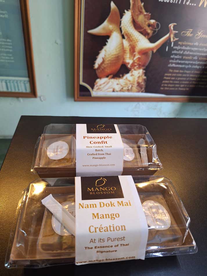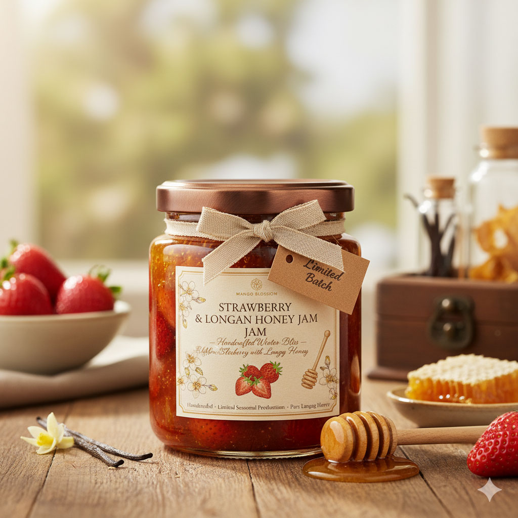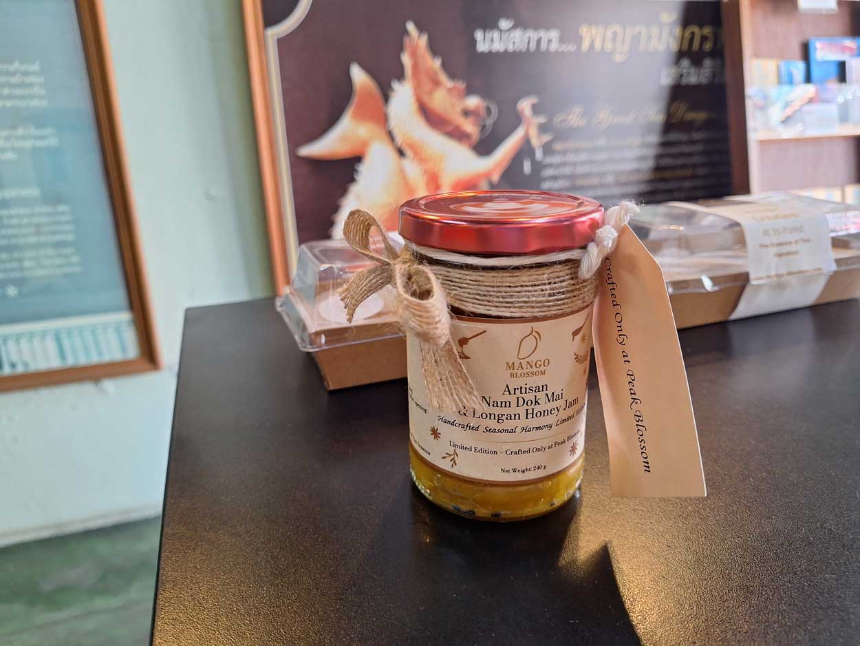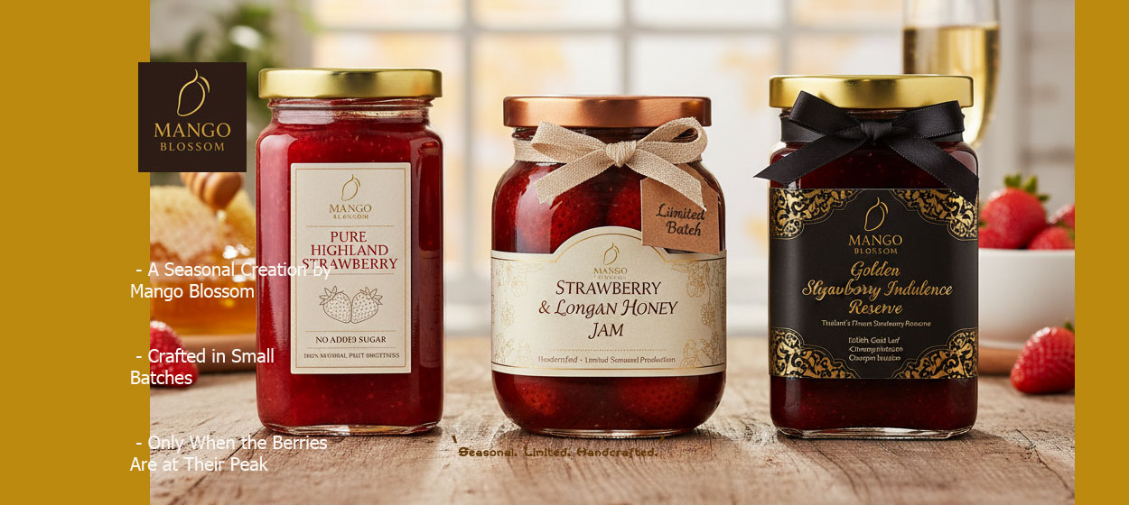 A limited-edition, handcrafted preserve marrying the lusciousness of ripe Nam Dok Mai mangoes with the rich, aromatic sweetness of pure Thai Longan Honey. A truly authentic taste of Thailand's seasonal bounty.